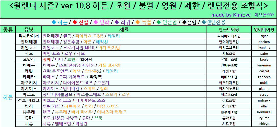 원랜디 조합식 : 원랜디 캐릭터 검색기