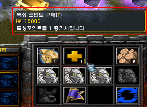 7. 돈(골드) 도박 졸업 후 특성포인트 구매 (15,000골드로 1회 가능)