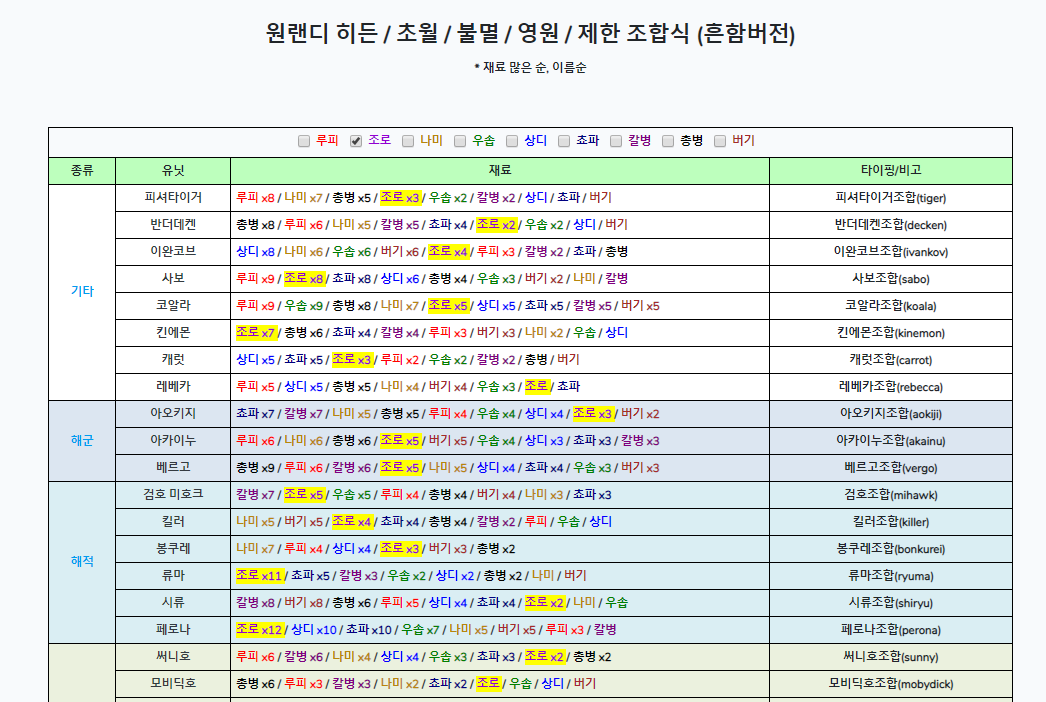 원랜디 캐릭터(유닛) 검색기를 만들어 보았다 !! (사이트 바로 이동)