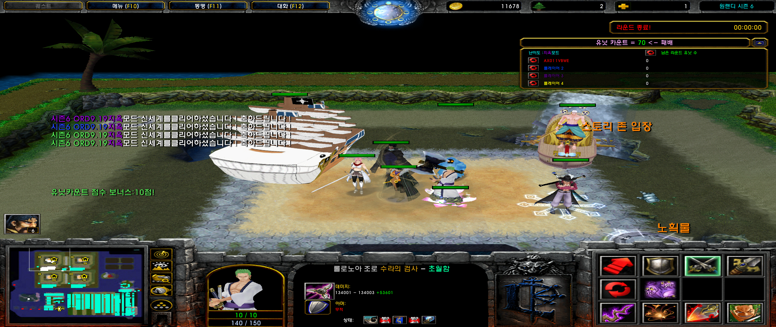 원피스 랜덤 디펜스 9.19(Fix8) 헬 솔로 클리어 - 조초 크제 레제