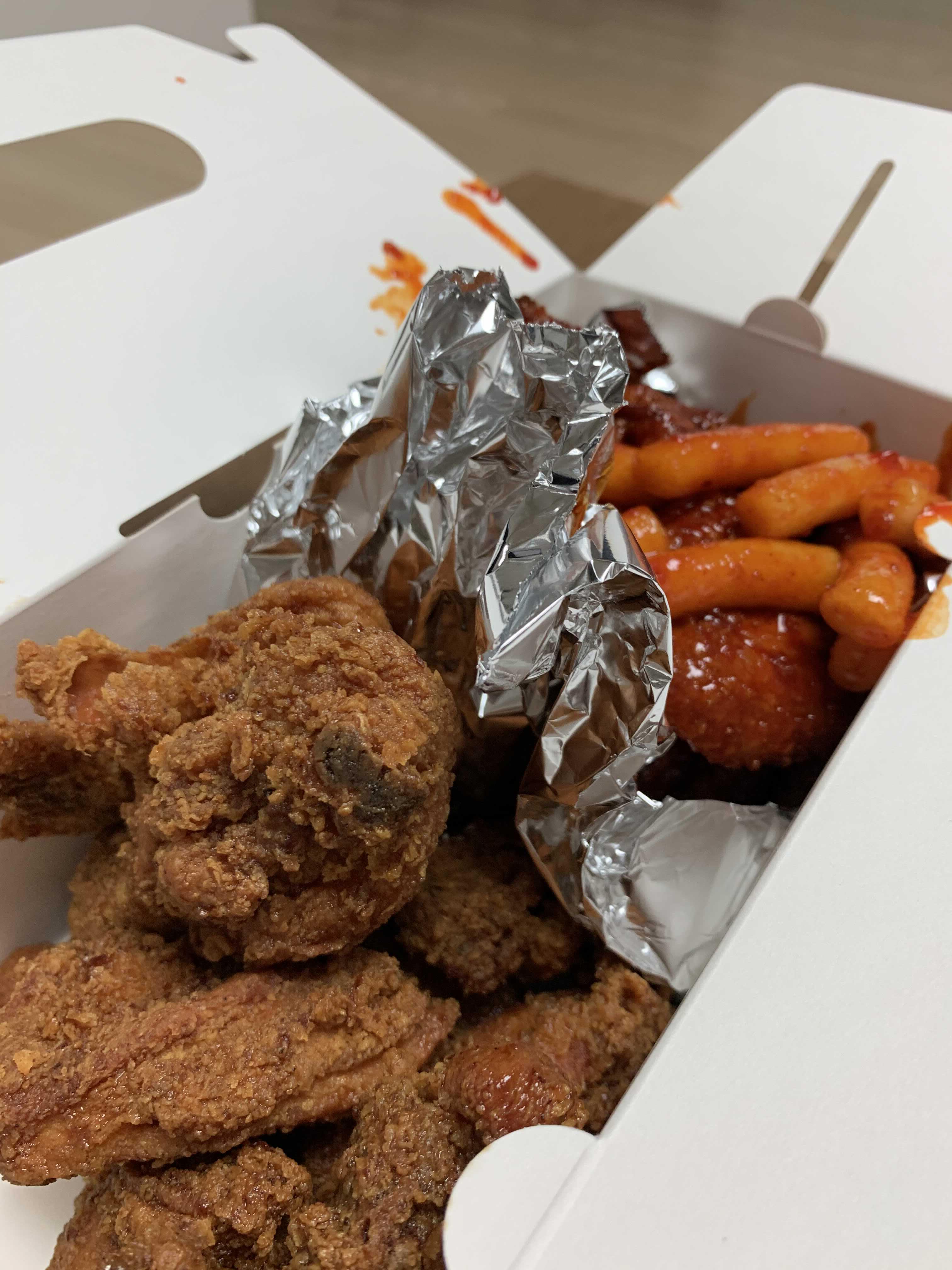 여긴 핫양념. 핫양념은 맛도 물론이지만 느끼할 수 있는 치킨맛을 완벽히 제거해주는 역할이 크다. (떡은 서비슨데 겁나 많이 주심)