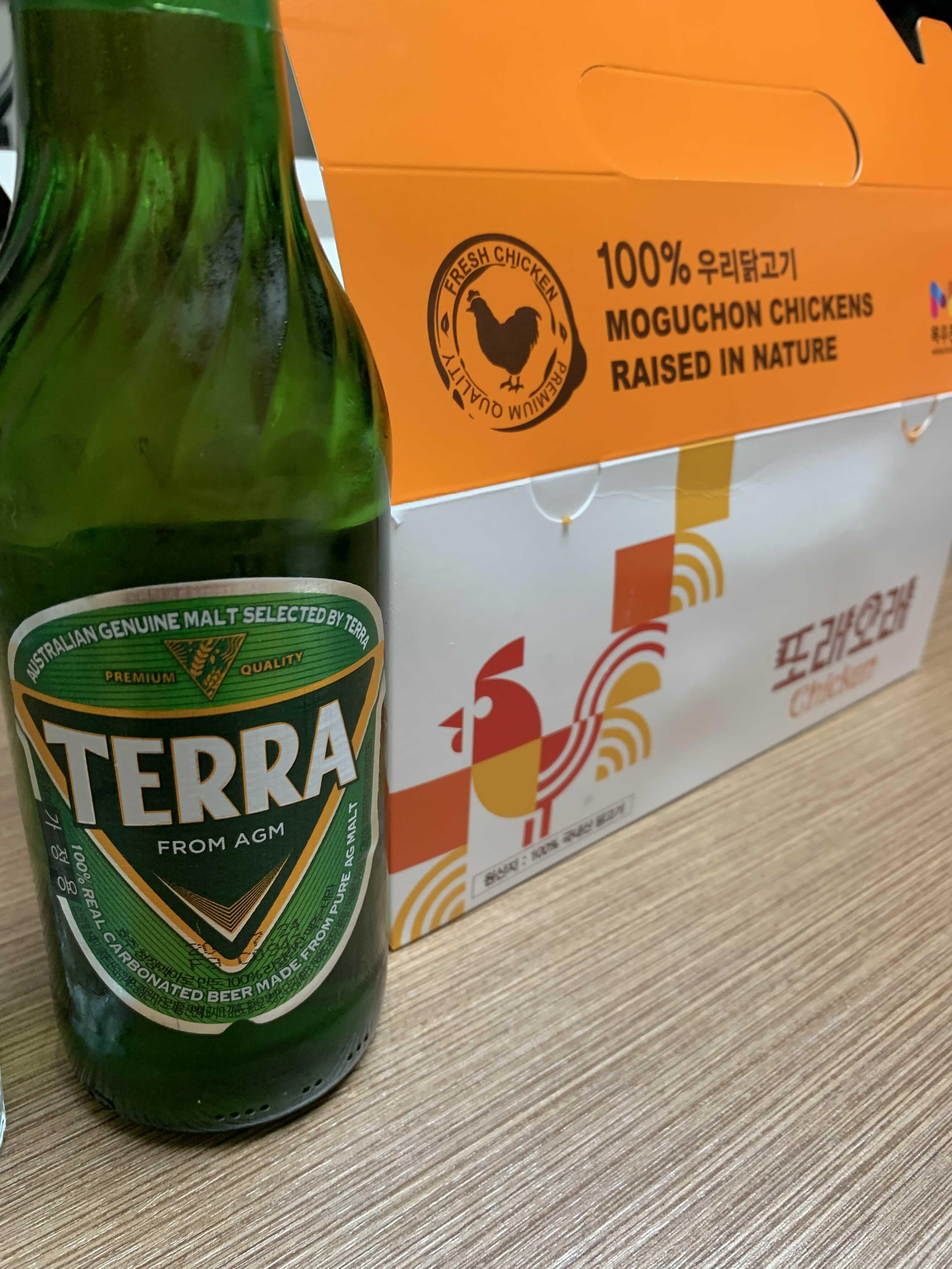 오늘은 손흥민선수 선발 경기가 있는 날이다. (EPL 3R 토트넘 VS 뉴캐슬) 축구볼땐 또 치맥이 아니겠는가. 그리하여 오늘은 또래오래 갈릭반 핫양념반을 먹었다. 언제 먹어도 맛있는 이 조합은 역시나 오늘도 맛있었다. 집에서 정말 가까워서 맥주도 살겸 배달비도 아낄겸 전화로 포장 주문을 하고 직접 찾아왔다.