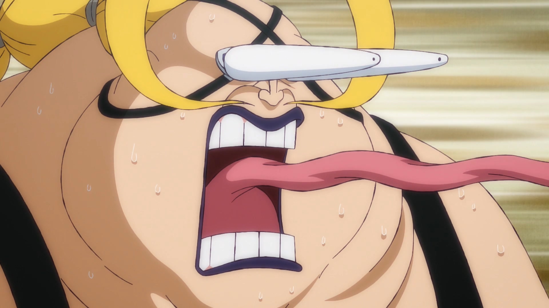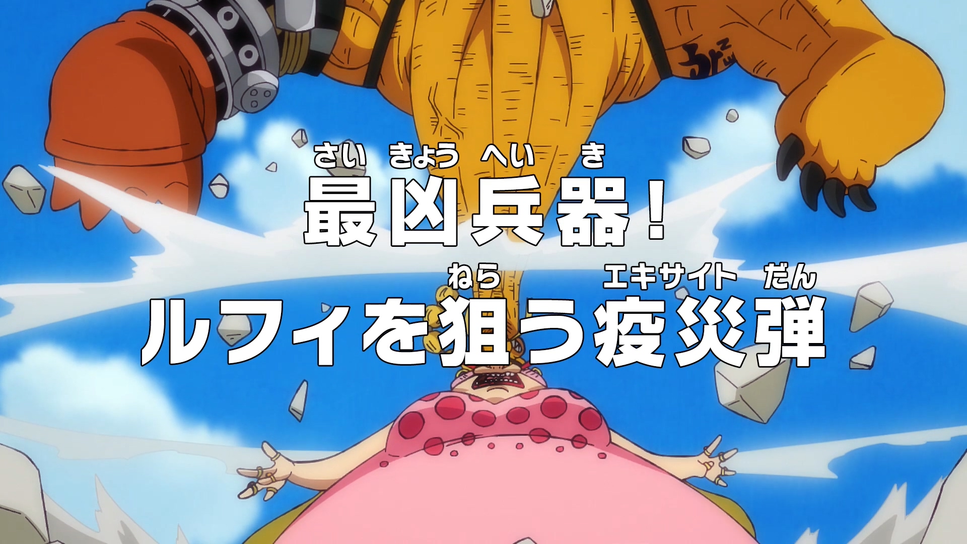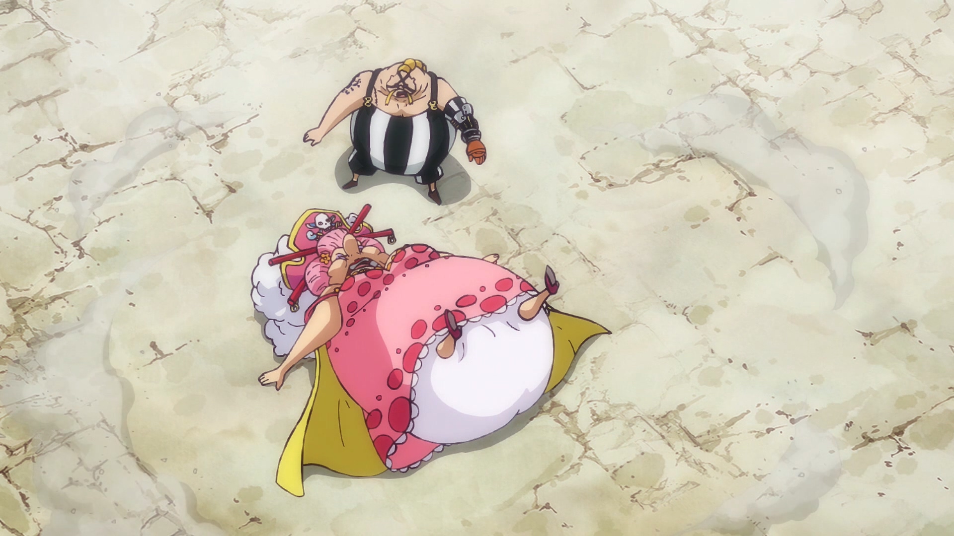 | 기억을 잃은 빅맘이 단팥죽을 먹기 위해 우동으로 난입해 난동을 부린다. 우동에 있던 퀸은 빅맘을 보고 기겁을 하고,,, 하지만 가만히 지켜볼 수만은 없던 퀸은 공룡으로 변신해 빅맘을 저지하려고 박치기를 한 방 크게 먹이지만,,, 빅맘은 멀쩡할 뿐더러 모든 기억까지 돌아온다. |