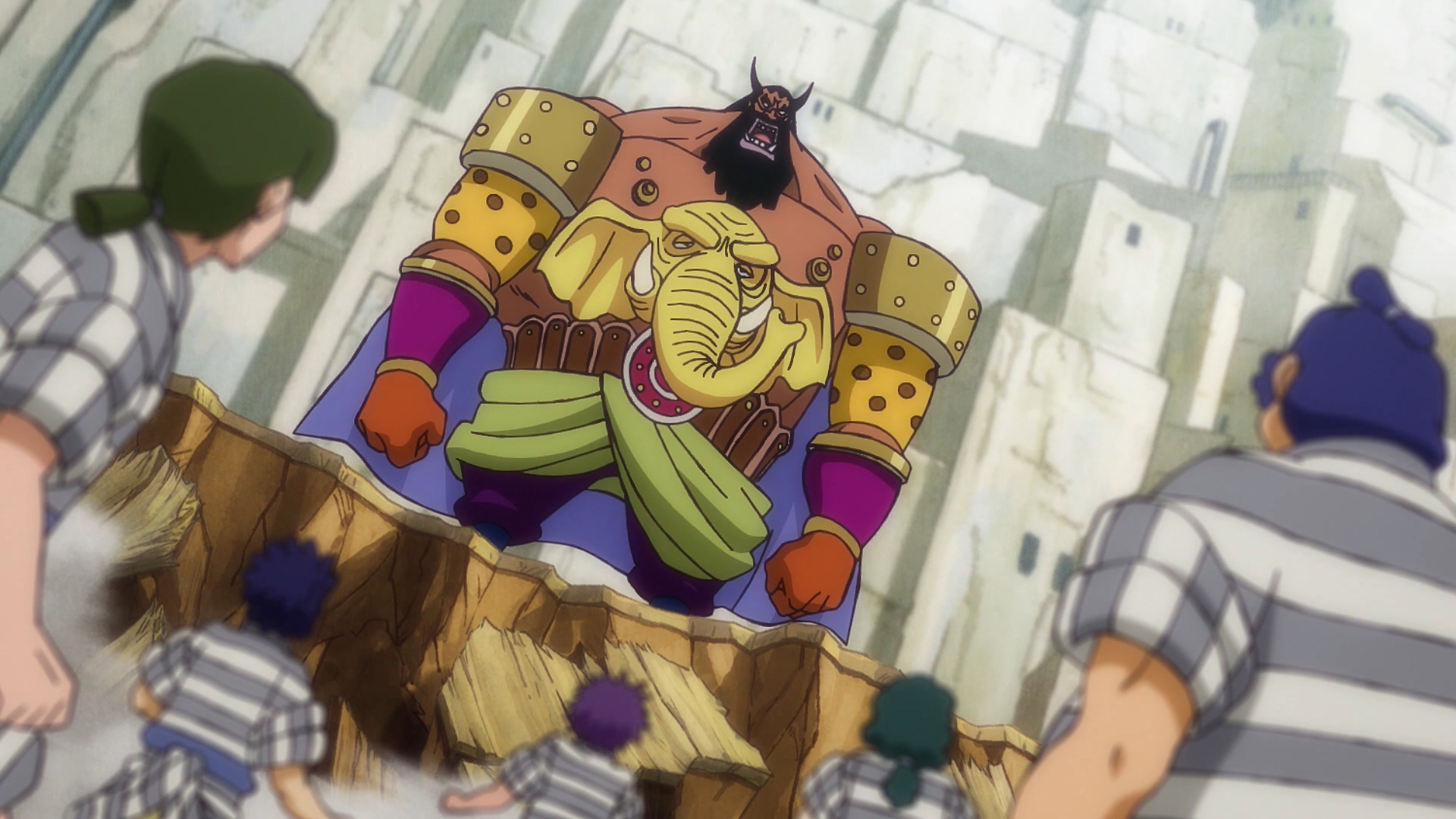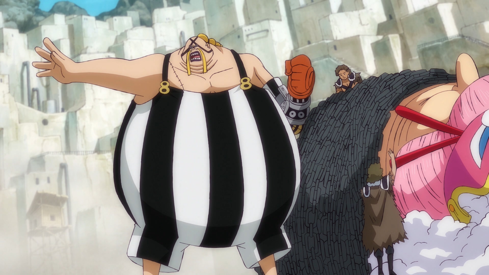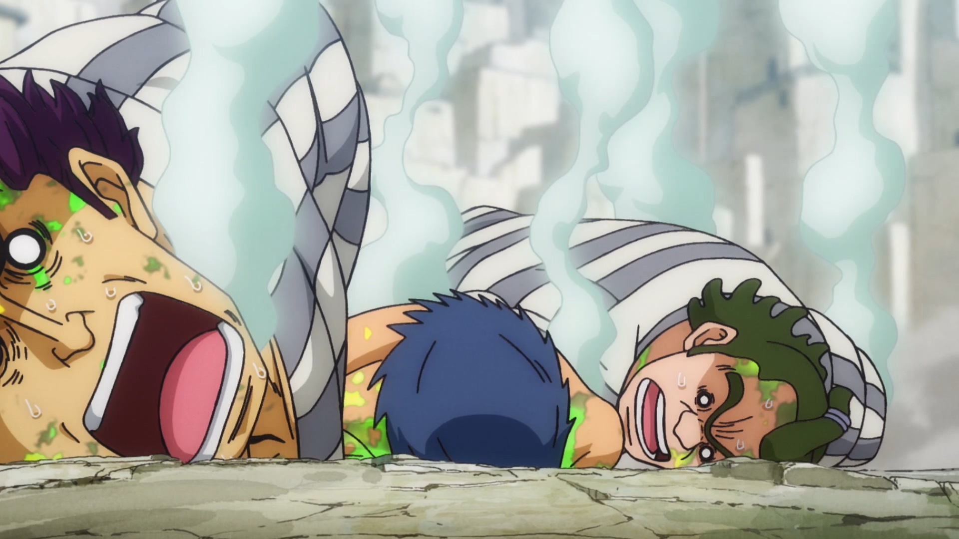| 기억을 잃은 빅맘이 단팥죽을 먹기 위해 우동으로 난입해 난동을 부린다. 우동에 있던 퀸은 빅맘을 보고 기겁을 하고,,, 하지만 가만히 지켜볼 수만은 없던 퀸은 공룡으로 변신해 빅맘을 저지하려고 박치기를 한 방 크게 먹이지만,,, 빅맘은 멀쩡할 뿐더러 모든 기억까지 돌아온다. |